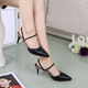 2017春秋新款凉鞋交叉绑带高跟鞋粗跟绒面浅口性感黑色单鞋工作鞋