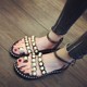 韩版松糕凉鞋女夏2017新款厚底防滑套趾珍珠凉鞋一字扣学生女鞋潮
