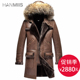 HANMIIS2016新款 加长款男士皮草风衣美洲貉连帽皮毛一体真皮皮衣