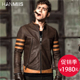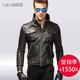 HANMIIS2016 高街时尚 斜拉链绵羊皮机车皮夹克真皮皮衣男单外套
