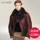 HANMIIS2016男装棒球服 爆裂机车皮毛一体绵羊皮夹克真皮皮衣皮草