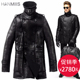 HANMIIS 加长款皮毛一体男装真皮皮衣男士风衣夹克大衣羊皮草外套