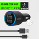 贝尔金车载充电器iPhone6 puls苹果5s通用点烟器车充双USB口2.1a