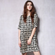名媛范宽松桑蚕丝真丝连衣裙女印花复古时尚修身中袖2017夏装新款