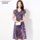2017夏季新款气质中年女装收腰大摆连衣裙大码印花显瘦雪纺连衣裙