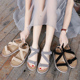 2017新款坡跟女凉鞋夏天厚底舒适一字带高跟鞋显瘦时尚鱼嘴凉鞋女