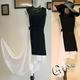 黑白不规则雪纺马甲背心吊带裙无袖连衣裙长裙时尚套装两件套女夏