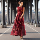 简约气质无袖提花连衣裙 新品长款收腰显瘦大摆印花复古长裙
