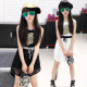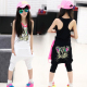 女童套装夏2017新款中大童豹头涂鸦弹力工字背心哈伦中裤潮