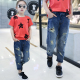 2017女童春装新品破洞水洗牛仔裤 中大女童牛仔小脚裤长裤休闲