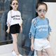中大女童2017夏装中长款短袖t恤个性字母短袖T恤 女大童短袖体恤