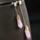 招旺桃花天然原矿粉晶水晶耳环女纯银韩国长款气质简约甜美耳坠饰