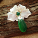 天然贝壳东陵玉祖母绿色胸针女胸花韩国别针配饰简约复古外套西装