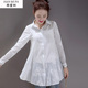 2017春装新款中长款百搭衬衣女POLO领韩版宽松清新大码长袖衬衫女