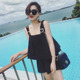 艾加春夏新韩版两穿奶茶色系小格子连体九分裤度假休闲旅游百搭潮