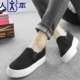 人本韩版小白鞋休闲板鞋春秋一脚蹬内增高黑色帆布鞋女学生懒人鞋