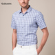 KALTENDIN/卡尔丹顿男士商务休闲短袖衬衫 中青年棉修身格子衫