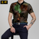 夏款桑蚕丝碎花男士修身衬衣 真丝镂空枫叶图案男士休闲短袖衬衫