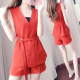 夏季小香风套装2017新款韩版名媛气质西装领夏装阔腿短裤连体裤女