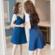 套装女夏2017新款韩版纯色针织T恤收腰吊带牛仔连衣裙夏季两件套