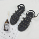 凉鞋女夏2017新款学生鞋女平底防滑铆钉鞋夹趾一字扣罗马沙滩女鞋