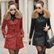 2017春秋新款中长款加棉皮衣皮风衣女时尚韩版修身大毛领皮衣外套