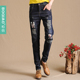 柏俏加肥加大码哈伦裤弹力破洞牛仔裤女韩版显瘦小脚裤胖mm200斤