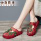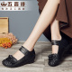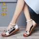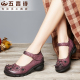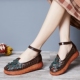 浅口单鞋女夏镂空鞋民族风女鞋一字扣真皮复古花朵中跟厚底皮鞋