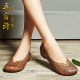 五言诗夏季镂空鞋女复古真皮浅口单鞋透气休闲妈妈鞋低跟女士皮鞋