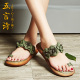 五言诗真皮花朵凉拖鞋女夏外穿室外出拖鞋平跟时尚复古牛皮女拖鞋