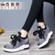 2017五言诗春款真皮手工休闲高跟单鞋女内增高时尚坡跟单鞋运动鞋
