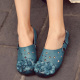 五言诗真皮凉拖鞋女夏外穿牛皮拖鞋半包头花朵低跟女鞋拖