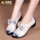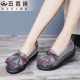 五言诗春秋手工编织牛皮女单鞋真皮蝴蝶结低跟中老年休闲妈妈鞋