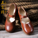 五言诗手工真皮复古鞋女低跟森系纯色单鞋女休闲舒适女士牛皮鞋