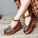 五言诗秋季新款复古手工真皮花朵单鞋女森系文艺坡跟牛皮春秋女鞋
