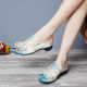 五言诗手工真皮凉拖鞋女外穿镂空花朵牛皮女舒适半包头凉拖