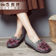 五言诗手工真皮休闲女浅口牛皮休闲花朵低跟粗跟搭扣魔术贴春秋鞋
