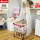 日本进口Faroro婴儿床实木带滚轮宜家多功能宝宝BB儿童游戏床蚊帐