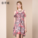 EITIE爱特爱旗舰店女装夏装简约时尚个性印花露肩圆领连衣裙女