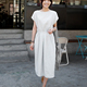 女夏短袖棉麻连衣裙胖妹妹收腰遮肚中长款爆款大码气质裙棉绸修身