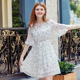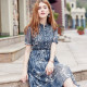 品质女装夏季新款系带V领喇叭袖a裙甜美印花雪纺连衣裙