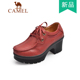Camel骆驼女鞋 正品秋季新款休闲单鞋高跟防水台系带皮鞋A1379090