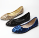 金色黑色亮片小聚会女鞋 浅口圆头平底单鞋shoes women sandals