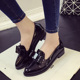 韩版2017春季漆皮中跟系带小皮鞋英伦复古学院风单鞋圆头休闲女鞋
