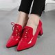 欧美17春季新款女鞋中跟粗跟漆皮系带小皮鞋尖头百搭女单鞋高跟鞋