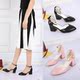 17韩版夏高跟凉鞋细跟蝴蝶结包跟侧空一字扣性感时尚鱼嘴大码女鞋