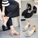 17韩版女夏百搭罗马凉鞋学生中跟粗跟绒面露趾一字扣带女士高跟鞋