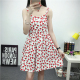 韩版太阳花樱桃唇膏红唇印花吊带裹胸碎花连衣裙女夏小清新带胸垫