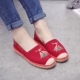 2017春季新款女懒人鞋亚麻布鞋一脚蹬松糕帆布鞋厚底涂鸦鞋渔夫鞋