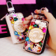 包邮 真皮水钻汽车钥匙包 镶钻时尚车用遥控套零钱包挂件女式
